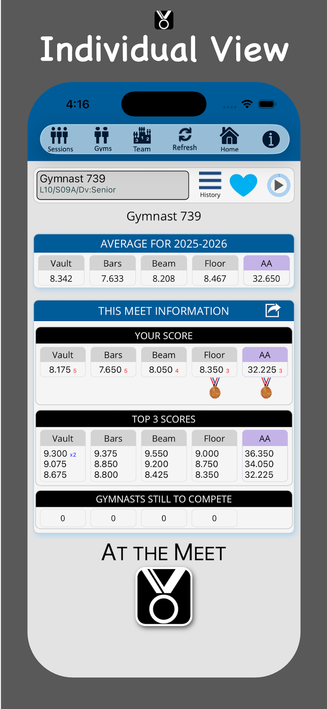 First off, I hope you find this app easy to use while watching your favorite gymnast at a meet!